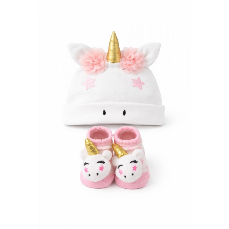 • Adorable baby hat and socks set with a cute animal/unicorn design