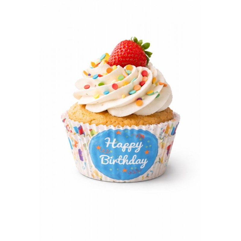 • Cupcake liners decorated with “Happy Birthday” design