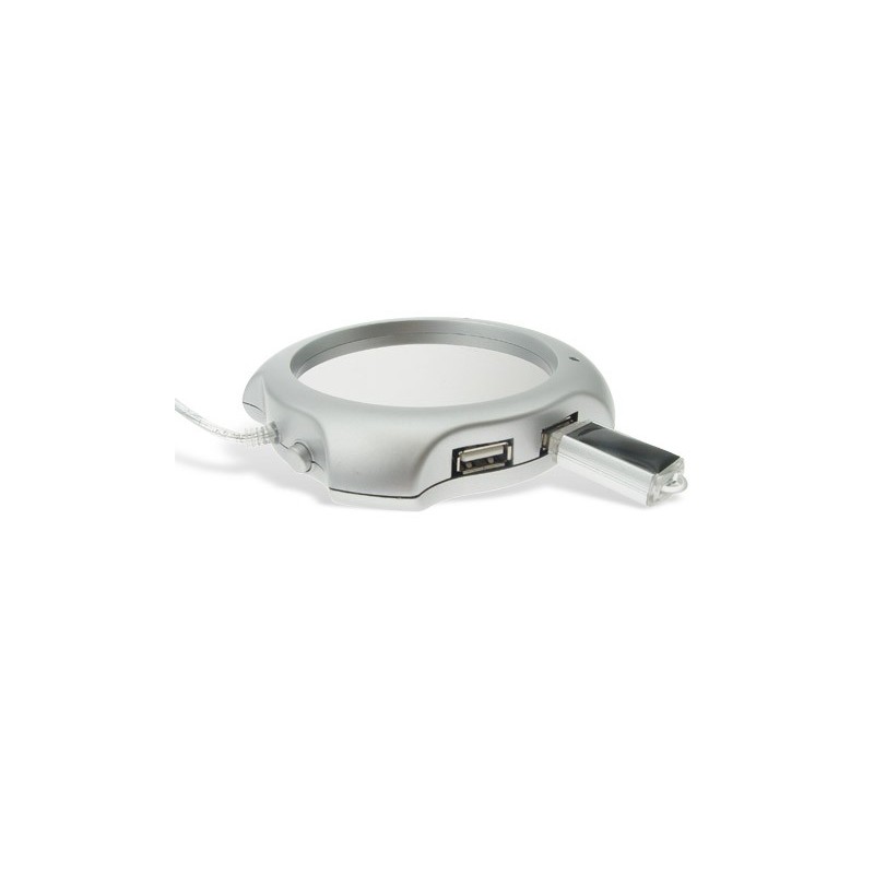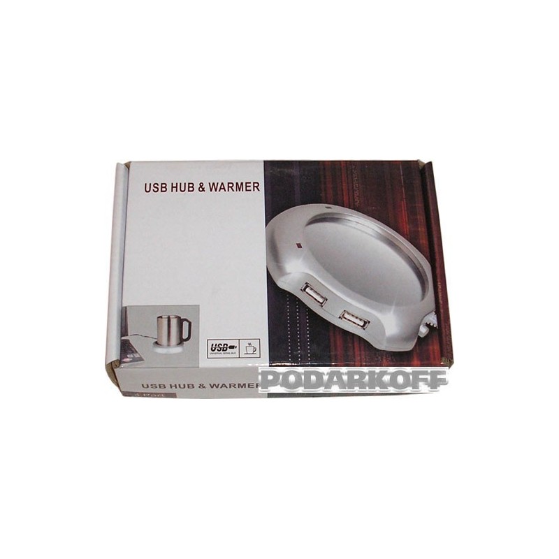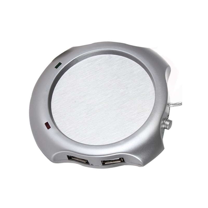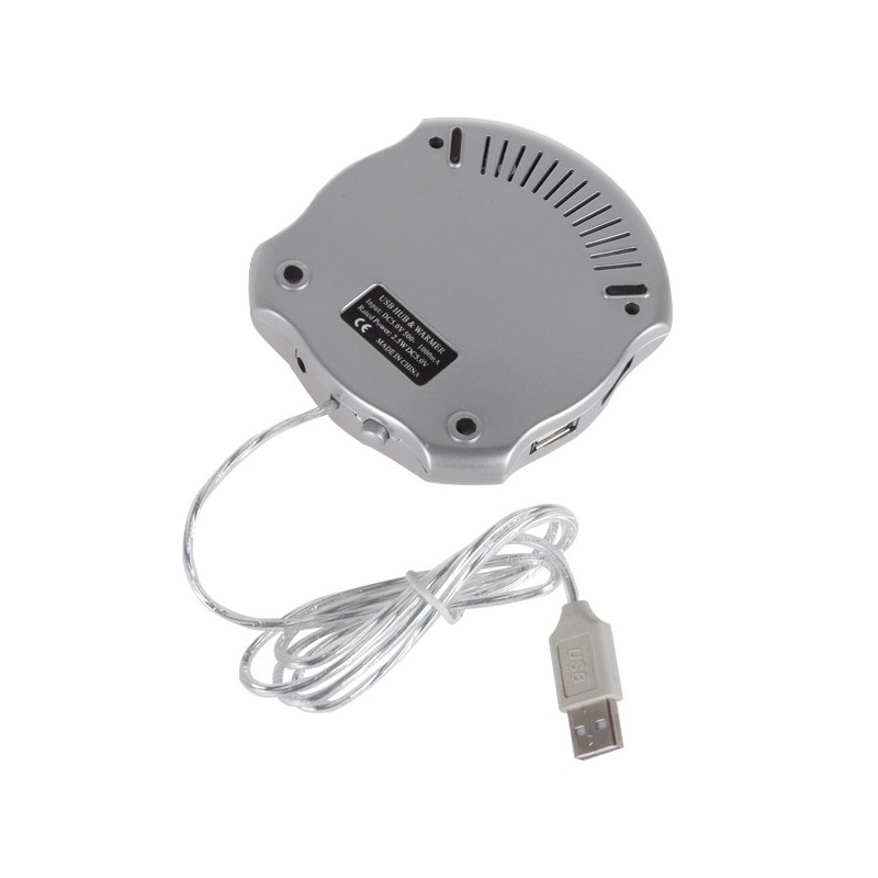This product is a USB cup warmer combined with a 4-port USB hub, designed to keep your drinks warm while expanding your computer's connectivity.