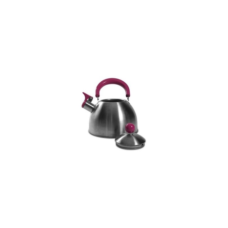 - Couleur : argent/métal brossé, la poignée, le bouton du couvercle rose vif