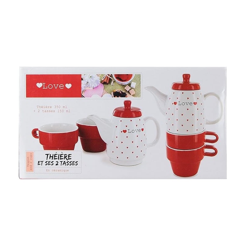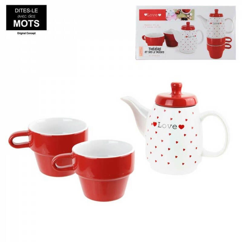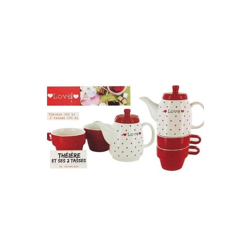 COFFRET THEIERE COEUR AVEC 2 TASSES