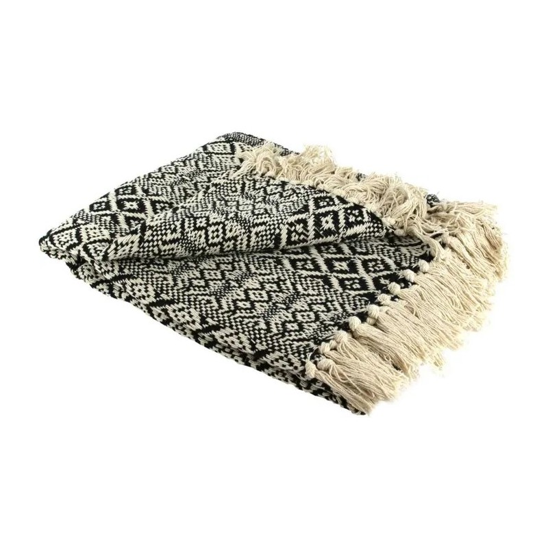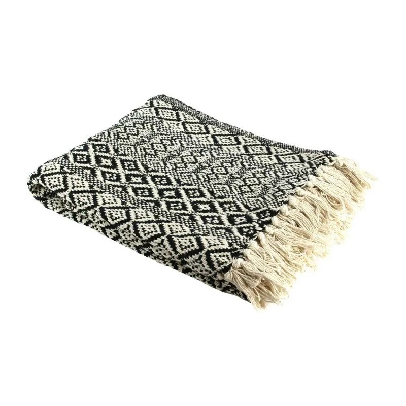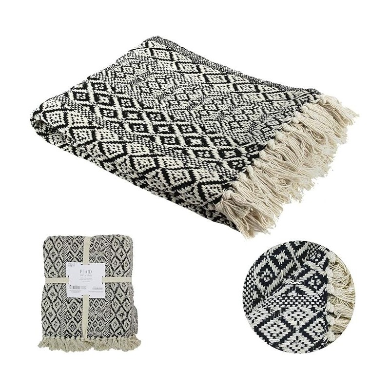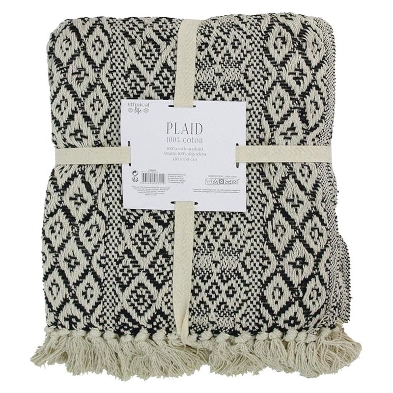 Plaid Ethnique à Carreaux Avec Franges 120 X 150 Cm