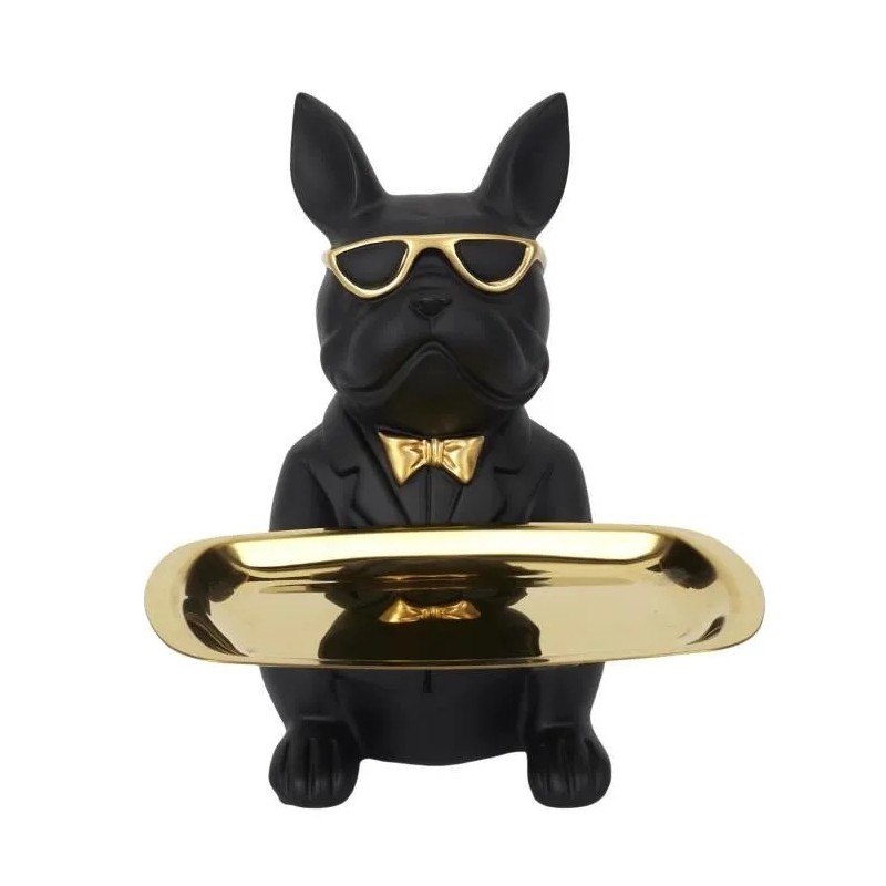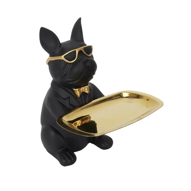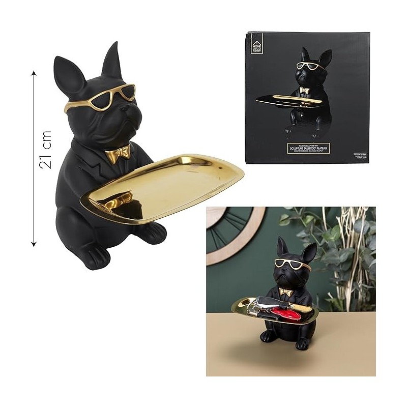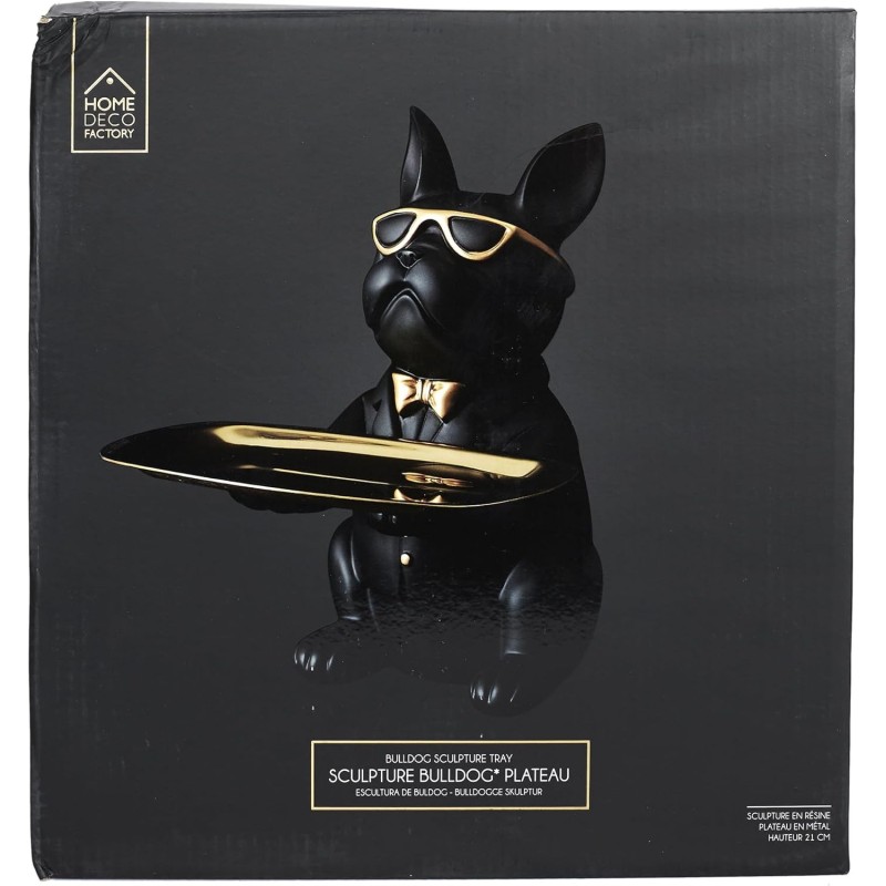 Sculpture Deco Bulldog Noir Vide Poche 21cm