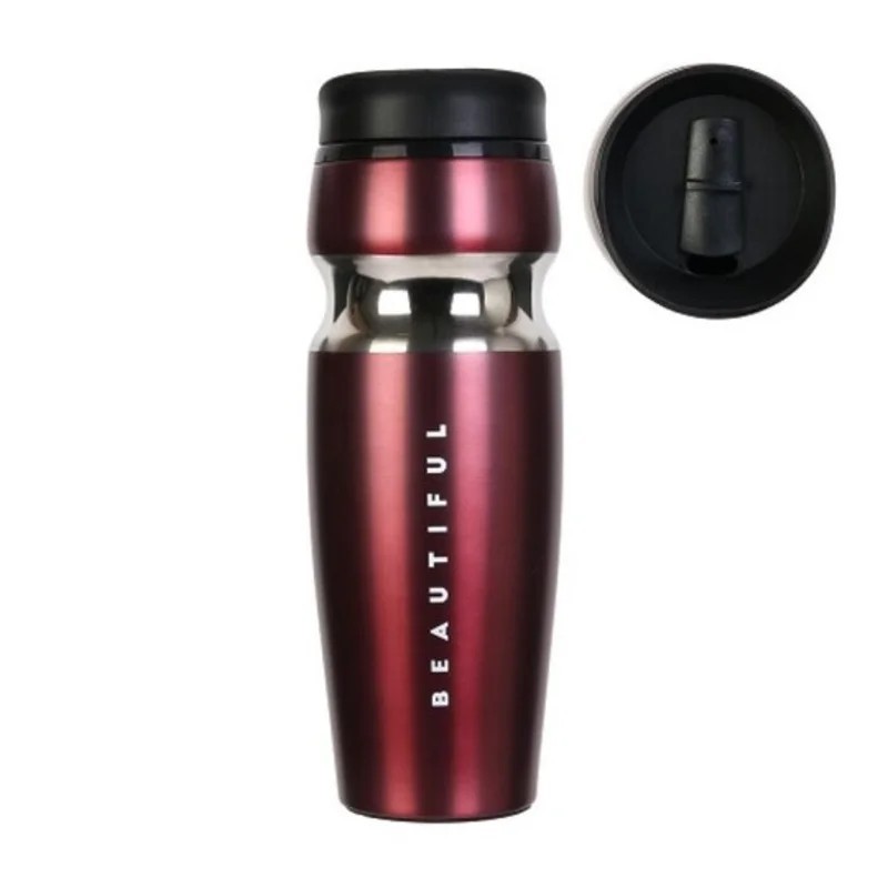 - Mug isotherme doté d'un couvercle hermétique avec un mécanisme d'ouverture pour boire, et sa forme ergonomique le rend facile à transporter