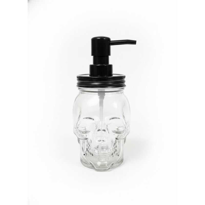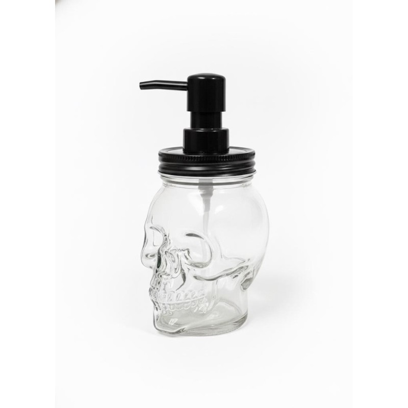 • Distributeur de savon moderne en verre transparent, design crâne tendance et décoratif.