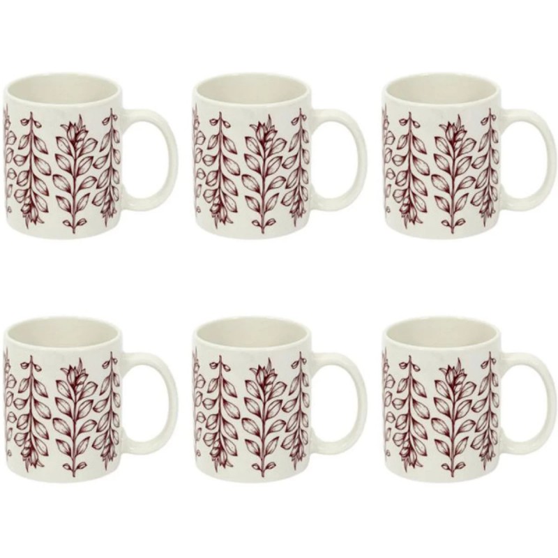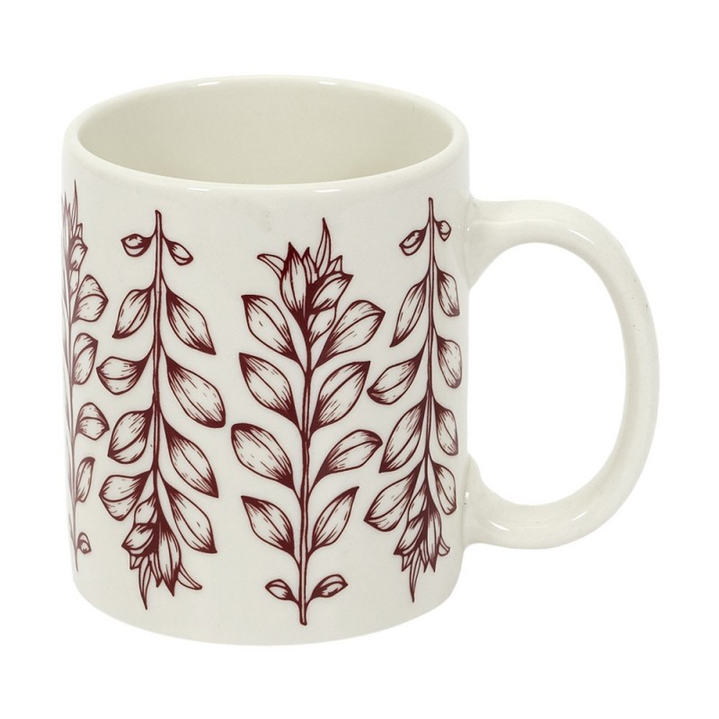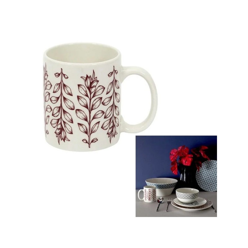 • Mug en porcelaine premium décoré d’un élégant motif floral rouge, style cottage.