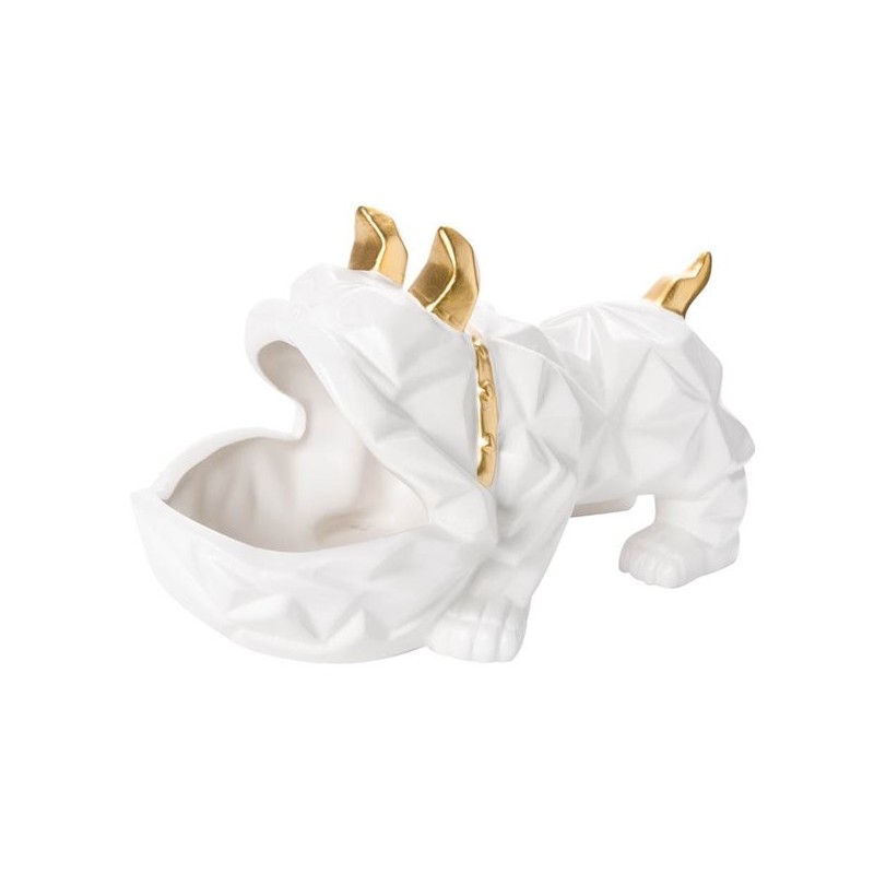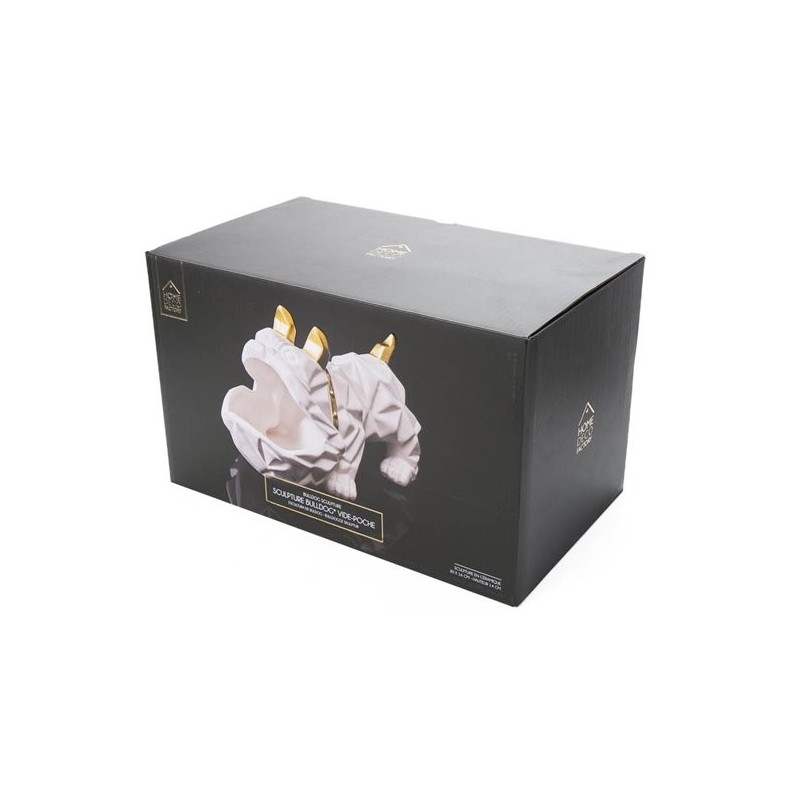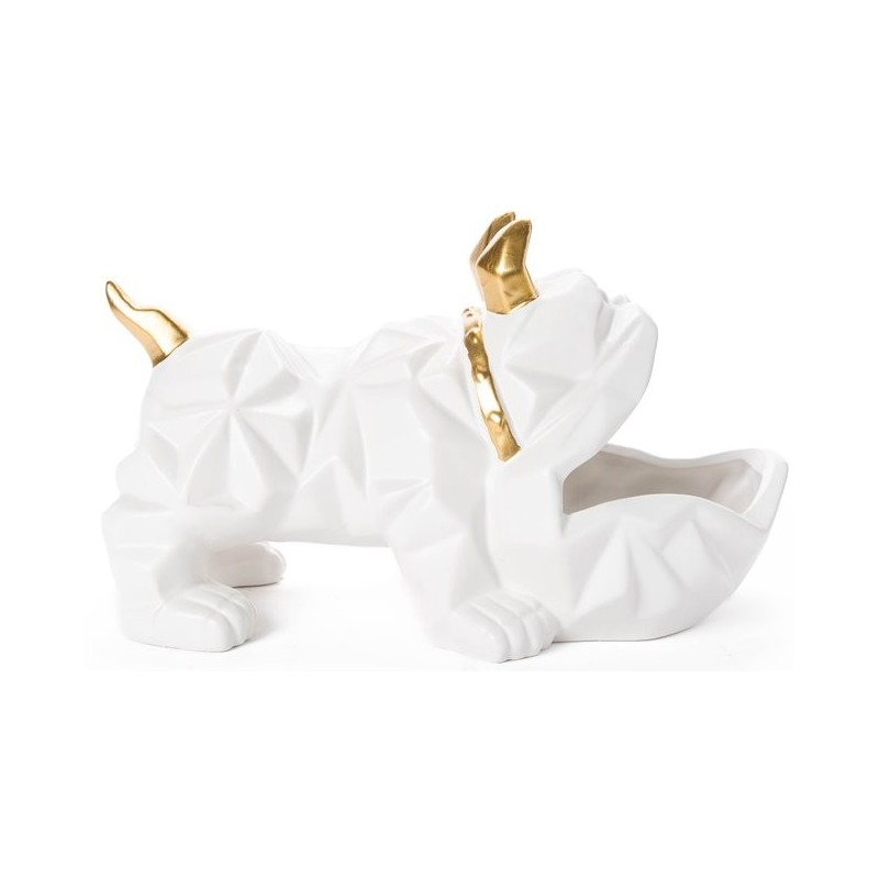 • Vide-poche décoratif en forme de bulldog géométrique, moderne et élégant.