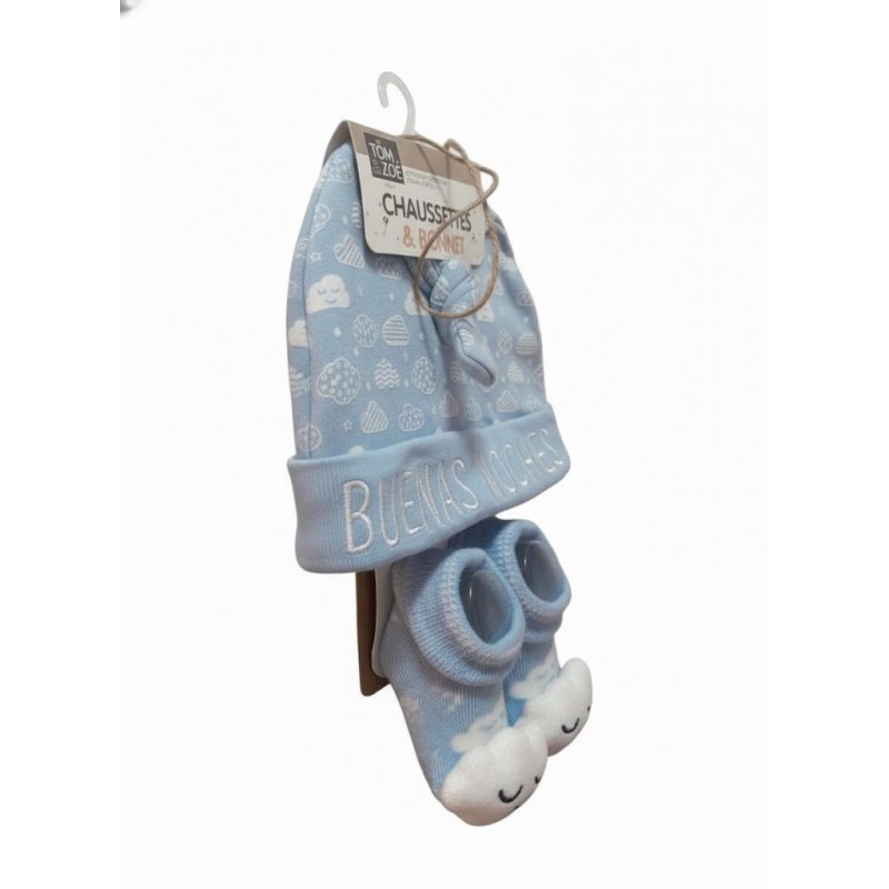 • Ensemble bonnet + chaussettes assorties, idéal pour bébé dès la naissance.