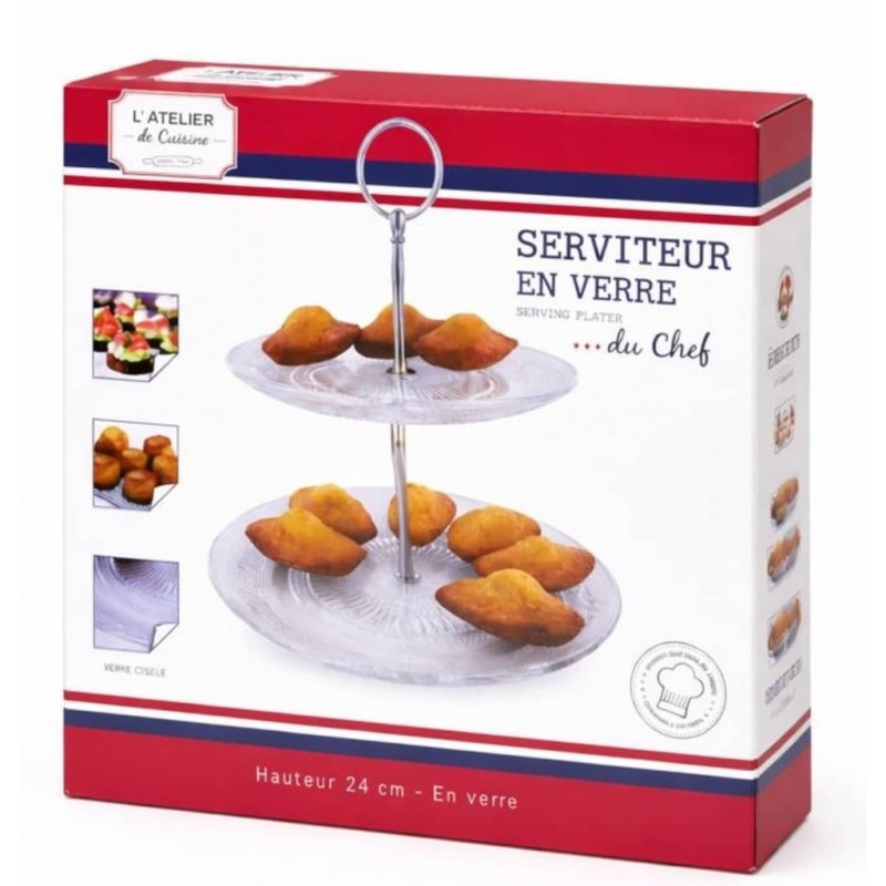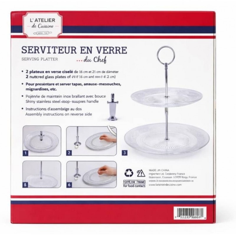 • Serviteur élégant en verre transparent, parfait pour présenter desserts, pâtisseries, fruits ou apéritifs.