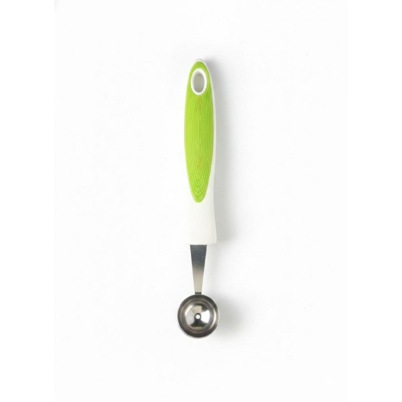La cuillère parisienne, est Idéale pour confectionner des boules décoratives de fruits(melon, pastèque, papaye), de légumes (pommes de terre pour les "pommes noisettes" ou "pommes parisiennes"), ou même de glace pour des présentations de desserts élégantes.Dotée d'une demi-sphère en acier inoxydable, la cuillère possède un bord biseauté et tranchant qui permet de creuser la chair avec précision, garantissant une forme ronde uniforme. Un petit trou au fond de la cuillère aide à évacuer l'excès de jus ou d'eau, facilitant ainsi la formation de billes nettes.