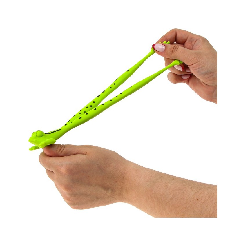 Cette grenouille est très résistante et peut être étirée jusqu'à deux mètres de long ! Grâce à sa petite cavité sous la tête, cette grenouille offre une excellente prise en main, ce qui permet de la manipuler facilement et de l'étirer au maximum. Les petits pourront aussi se lancer des concours de lancer en la propulsant le plus loin possible.