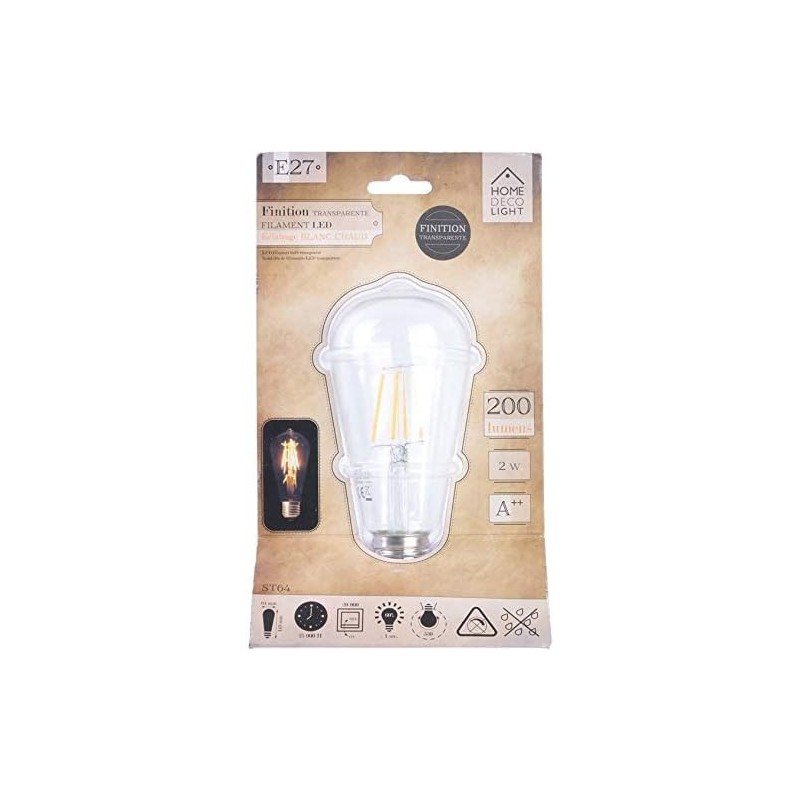 Cette ampoule ST64 à filaments LED de 2W est conçue pour offrir une lumière chaleureuse tout en étant économe en énergie. Avec son design transparent, elle s'intègre parfaitement dans divers environnements, apportant une touche vintage et élégante à votre décoration intérieure